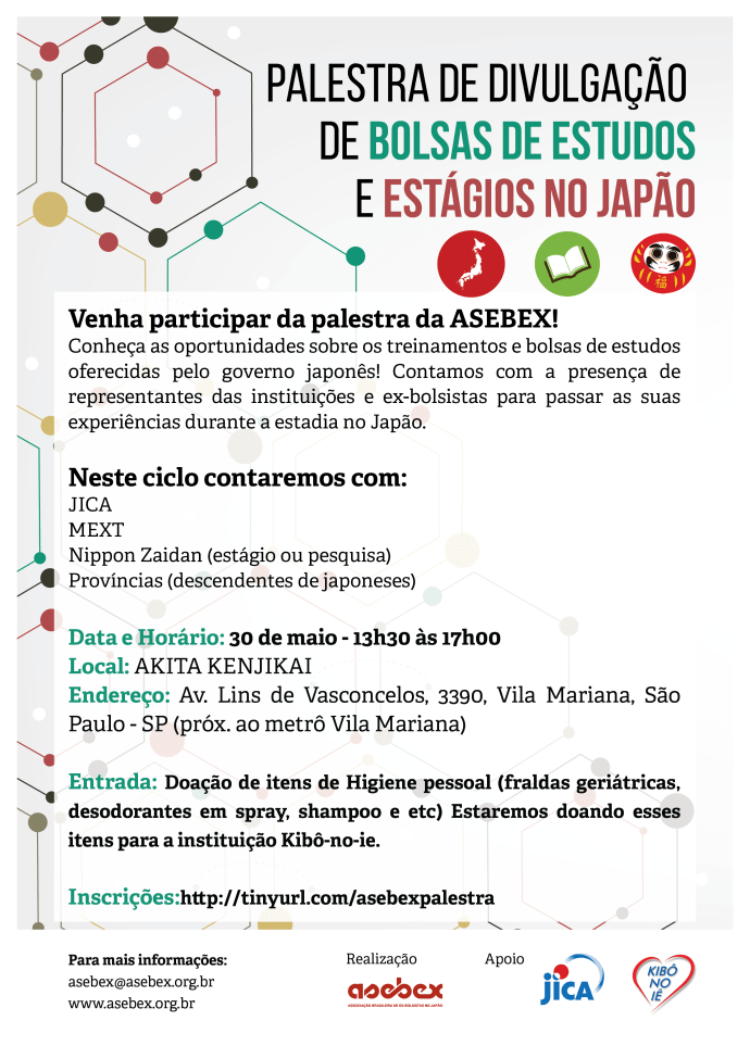 INSCRIÇÕES ABERTAS – 7o FIB – “O que é japonesar pra você?: a cultura nipo-brasileira atual” DATA DO EVENTO: 21 e 22 de Novembro LOCAL: Bunkyo MAIS INFORMAÇÕES: http://www.bunkyo.org.br/pt-BR/noticias/149-2015/860-7-fib-levanta-novo-tema-e-traz-atracoes-internacionais Acesse a página do Facebook: https://www.facebook.com/forumfib/ Participe!