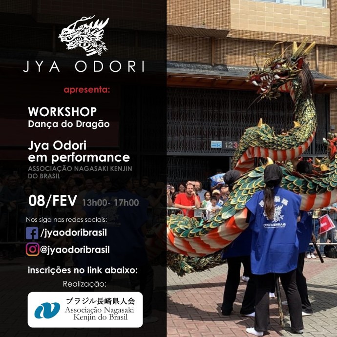 No dia 08 de fevereiro terá um Workshop especial do Grupo Nagasaki Jya Odori na ACAL (Associação Cultural e Assistencial da Liberdade no bairro da Liberdade em São Paulo. Quem é o Grupo Nagasaki Jya Odori? O Grupo Nagasaki Jya Odori, formado por descendentes e não descendentes da província de Nagasaki, carregam consigo, não somente…